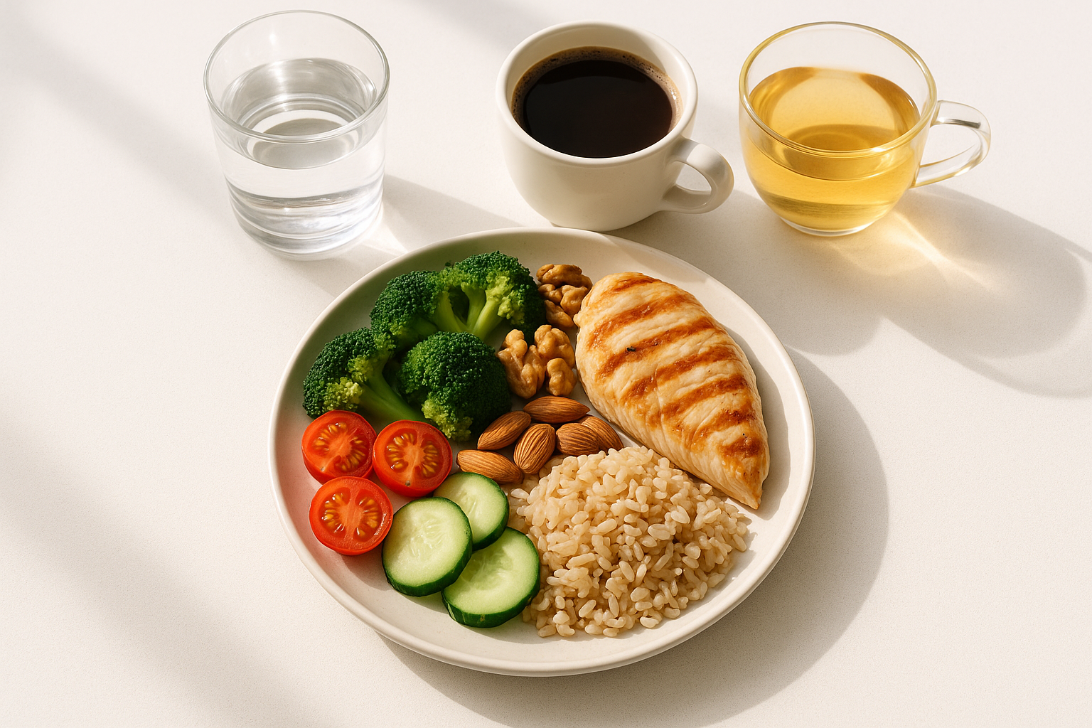 • Stay Hydrated: Drink water, herbal teas, and black coffee to suppress hunger.